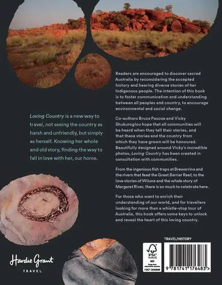 In Loving Country, Bruce and Vicky hope that all communities will be heard when they tell their stories, and that these stories and the country from which they have grown will be honoured. Readers are encouraged to discover sacred Australia by reconsidering the accepted history, and hearing diverse stories of her Indigenous peoples. It is a roadmap to communication and understanding, between all peoples and country, to encourage environmental and social change.