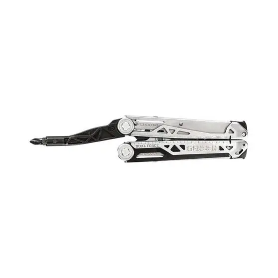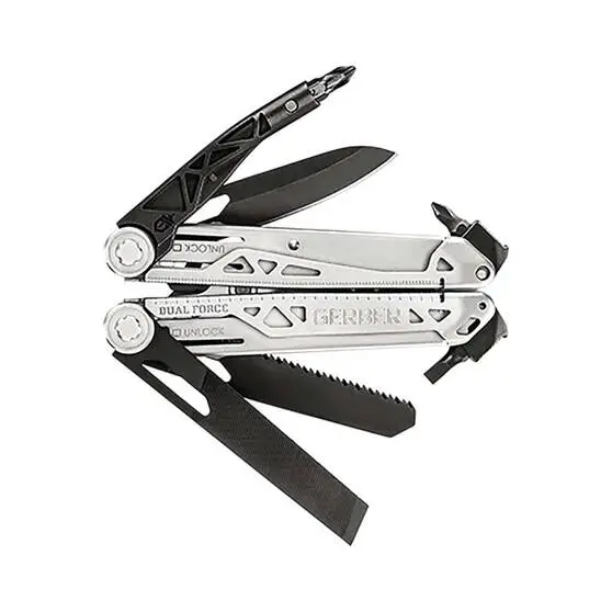 The Dual Force Pro Multi-tool is one tough tool offering 2 times the jaw strength of your standard multi-tool. You wont need to go back to the tool box for a popper set of pliers when you have this multi-tool on the job! It has 15 handy tools including blunt nose layered construction jaws, small fastener pliers, regular pliers, adjustable 2 side slip joint jaw, wire cutter, wire stripper, plain edge blade, centre-drive axis tech, saw, fine and coarse file, chisel edge, #1 and #2 cross drive, medium flat head screwdriver and a 20cm ruler. There is a handy tool to attach it to your belt for easy access and a lifetime warranty for peace of mind.