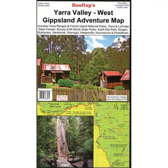Ideal for motor biking, bush camping and four-wheel driving, this double-sided map includes Yarra Ranges National Park, Bunyip and Mt Worth State Parks, Kurth Kiln Park, Yarra, La Trobe and Toolangi State Forests, as well as Pakenham, Warburton, Noojee, Marysville, Neerim South, Drouin, Gembrook, Warragul, Healesville and Powellton, with the reverse covering from Gembrook to Noojee, complete with forest activity information.